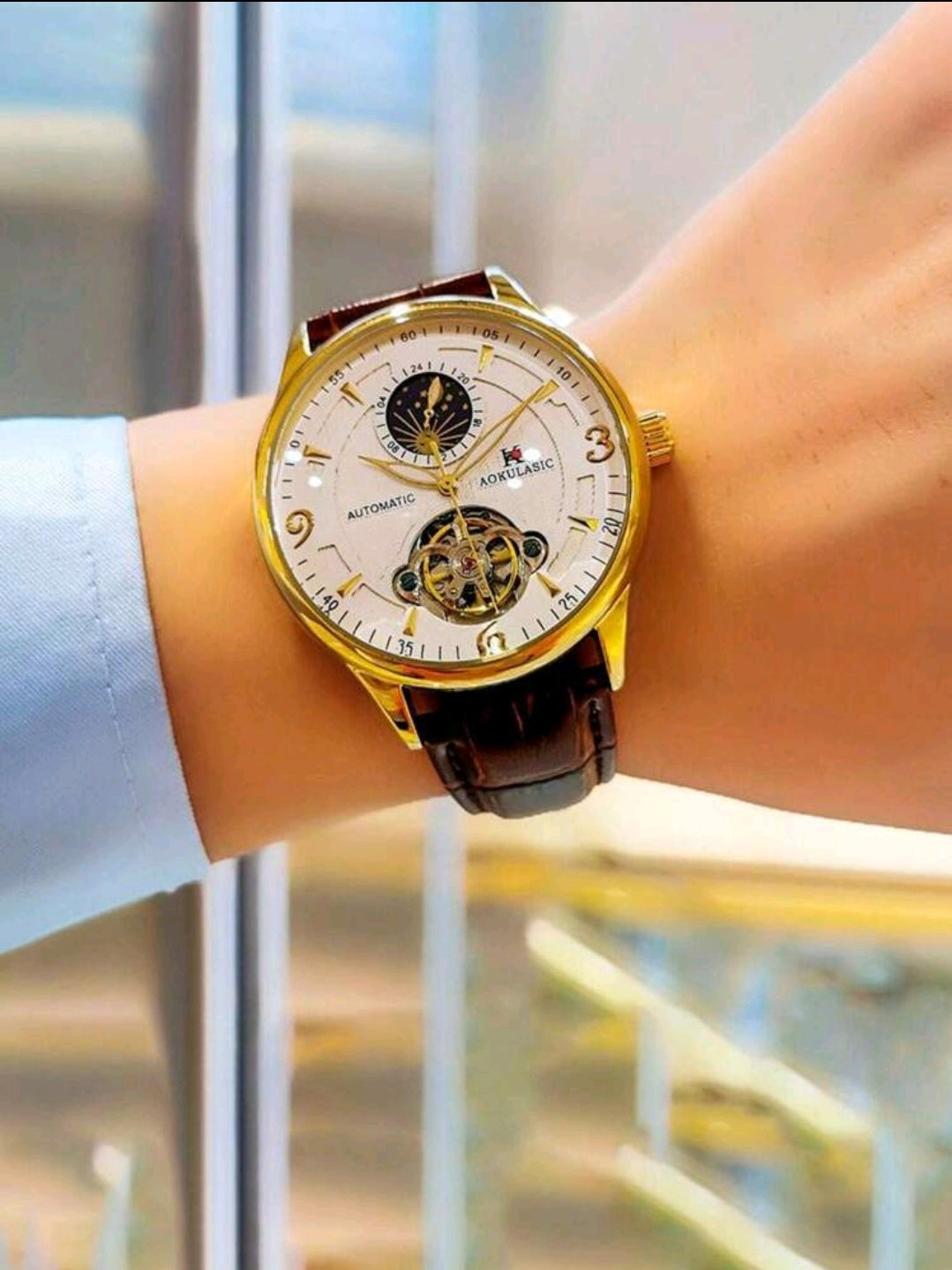 1 pièce Montre Mécanique Brun En Relief De Crocodile En Polyuréthane