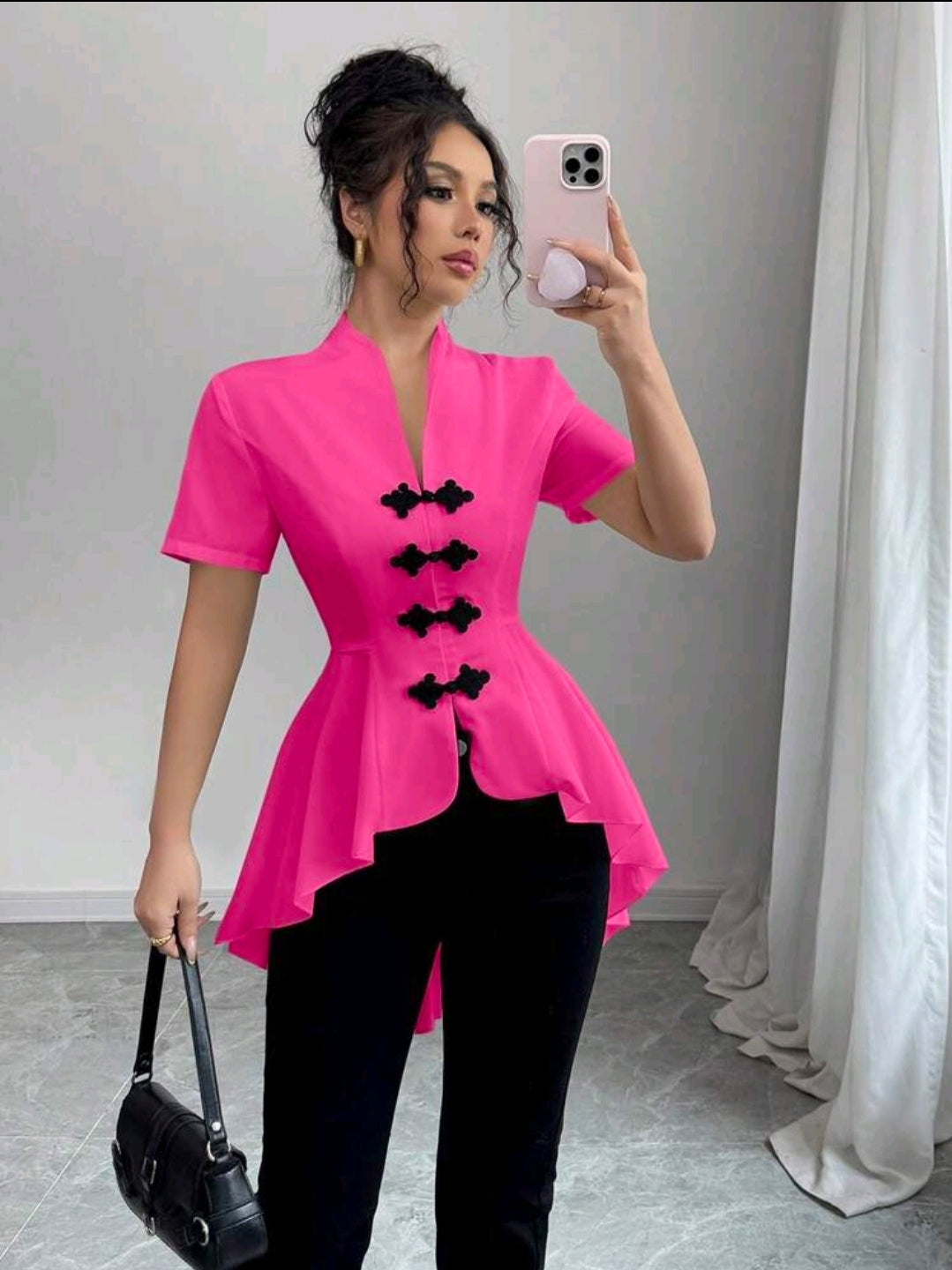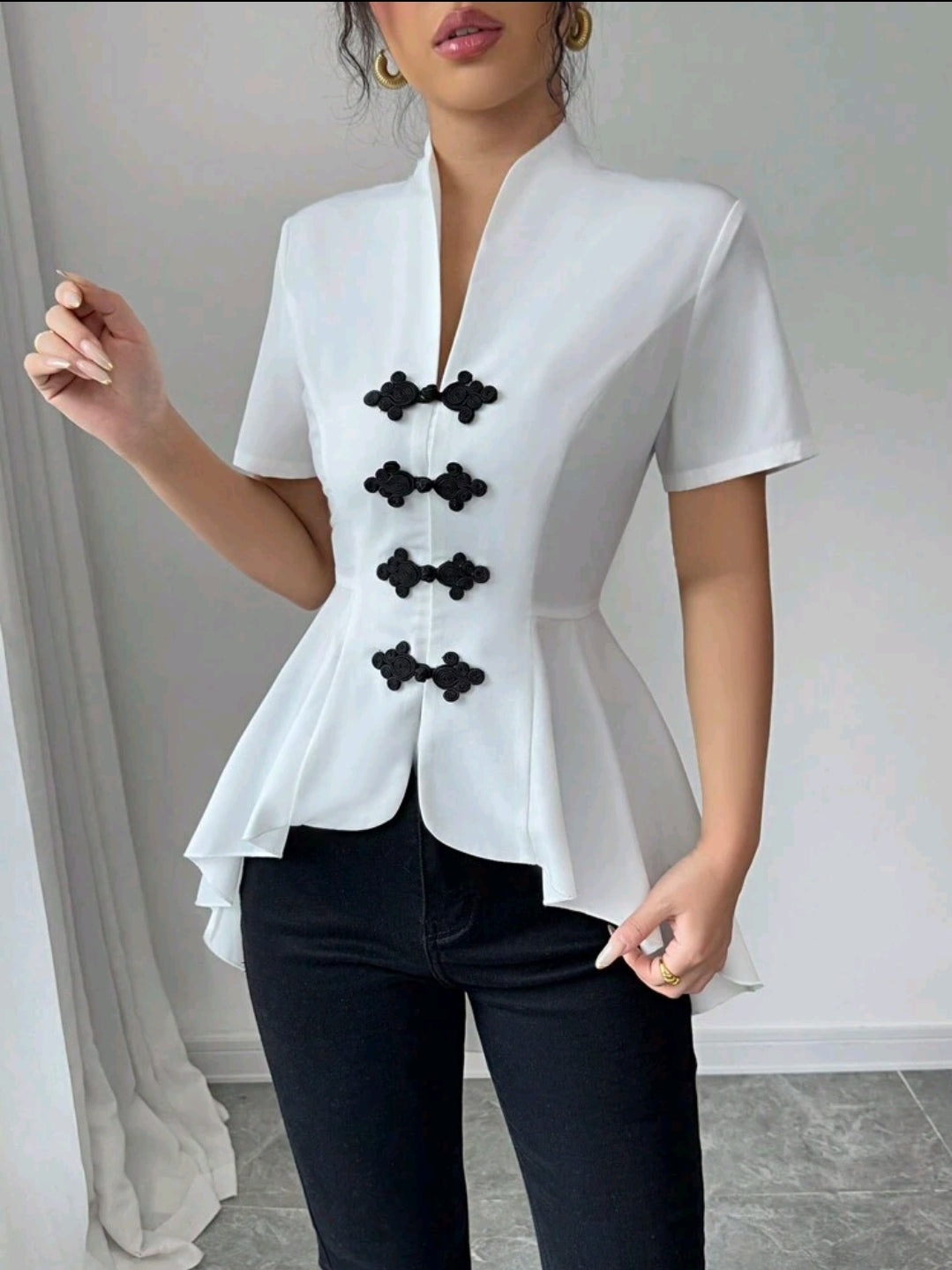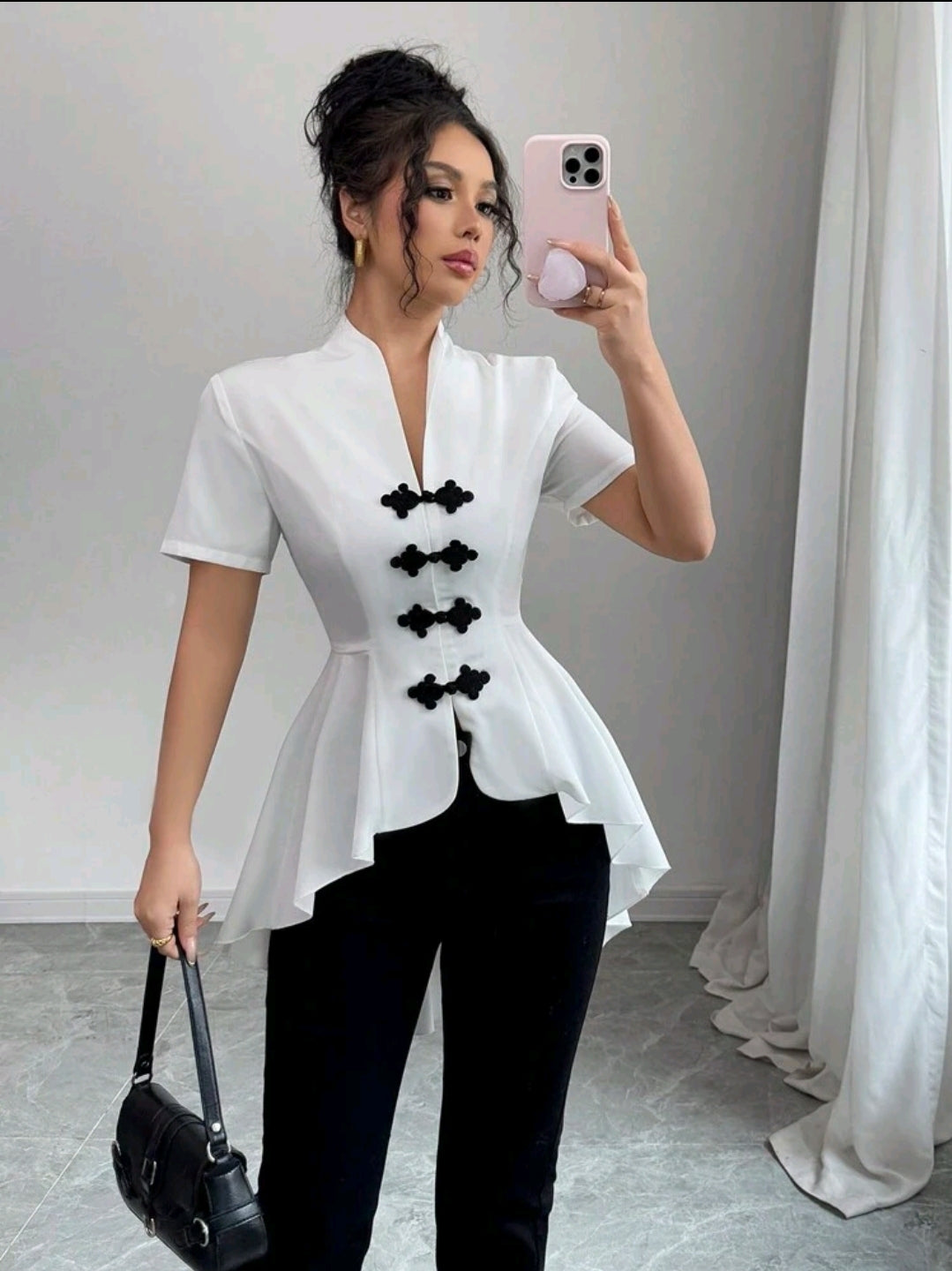 Elenzga Chemise décontractée 2024 pour femmes à boutons devant, décoration et ourlet asymétrique
